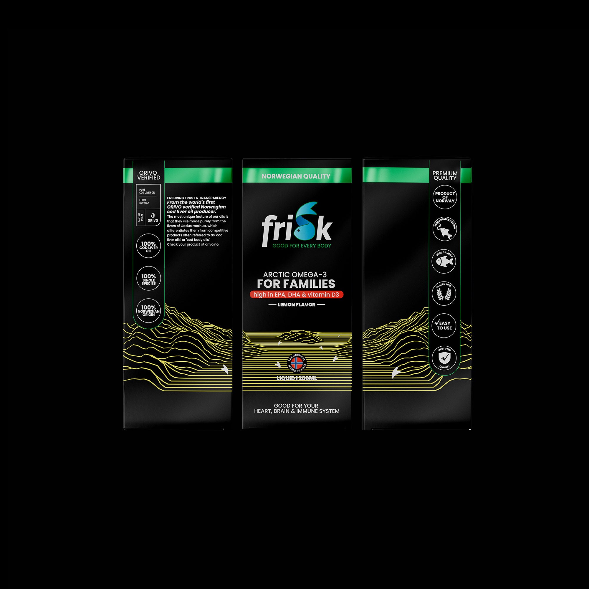 Arctic Omega-3 for Families uses only the purest fish oil, sourced from wild-caught Arctic cod, to deliver optimal levels of DHA and EPA in their natural form for maximum nutrient absorption. This premium fish oil ensures a natural balance, supporting your family’s heart, brain, and immune health. Enhanced with essential vitamins, it provides comprehensive support for both children and adults. Our commitment to quality guarantees that each serving delivers only the best ingredients to support your family’s health and well-being.